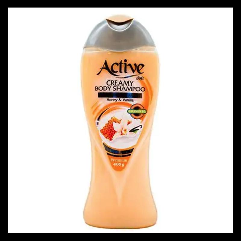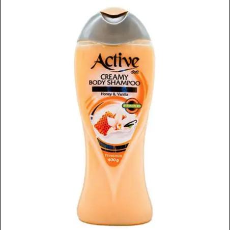شامپو بدن کرمی اکتیو مدل وانیل و عسل 400 گرمی، (Active Vanilla And Honey Creamy Body Shampoo)، شامپویی مناسب برای بانوان و آقایان، که رایحه دلپذیر عسل و وانیل آن بویی خوش و حسی دلانگیز را در شما زنده میکند. از آنجا که شامپو بدن کرمی اکتیو سرشار از ویتامین B5 است، قشر نازک هیدرولیپیدی پوست شما را تقویت نموده و همچنین پوست را مرطوب نگاه داشته و نرمی، لطافت و شادابی به آن میبخشد.