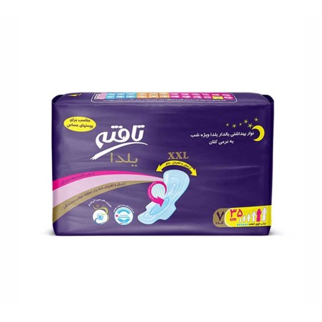 نوار بهداشتی یلدا با قدرت جذب بالا و دنباله دو برابر پهن تربه طول ۳۵ سانتی متر و چهار بال جهت استفاده طولانی در شب طراحی شده است و اطمینان خاطر را برای مصرف کننده به ارمغان میآورد. سایز فوق العاده بزرگ و پهنای زیاد دنباله نوار موجب جذب توسط باله شده که برای شبهای آغازین پریود مناسب است.